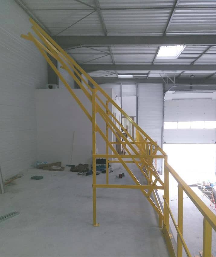 Les protections grillagées servent à cloisonner les zones sensibles (machines, stockages spécifiques, zones interdites) tout en maintenant la visibilité. Les échelles à crinoline, quant à elles, assurent un accès vertical sécurisé aux toitures, passerelles ou équipements techniques.
