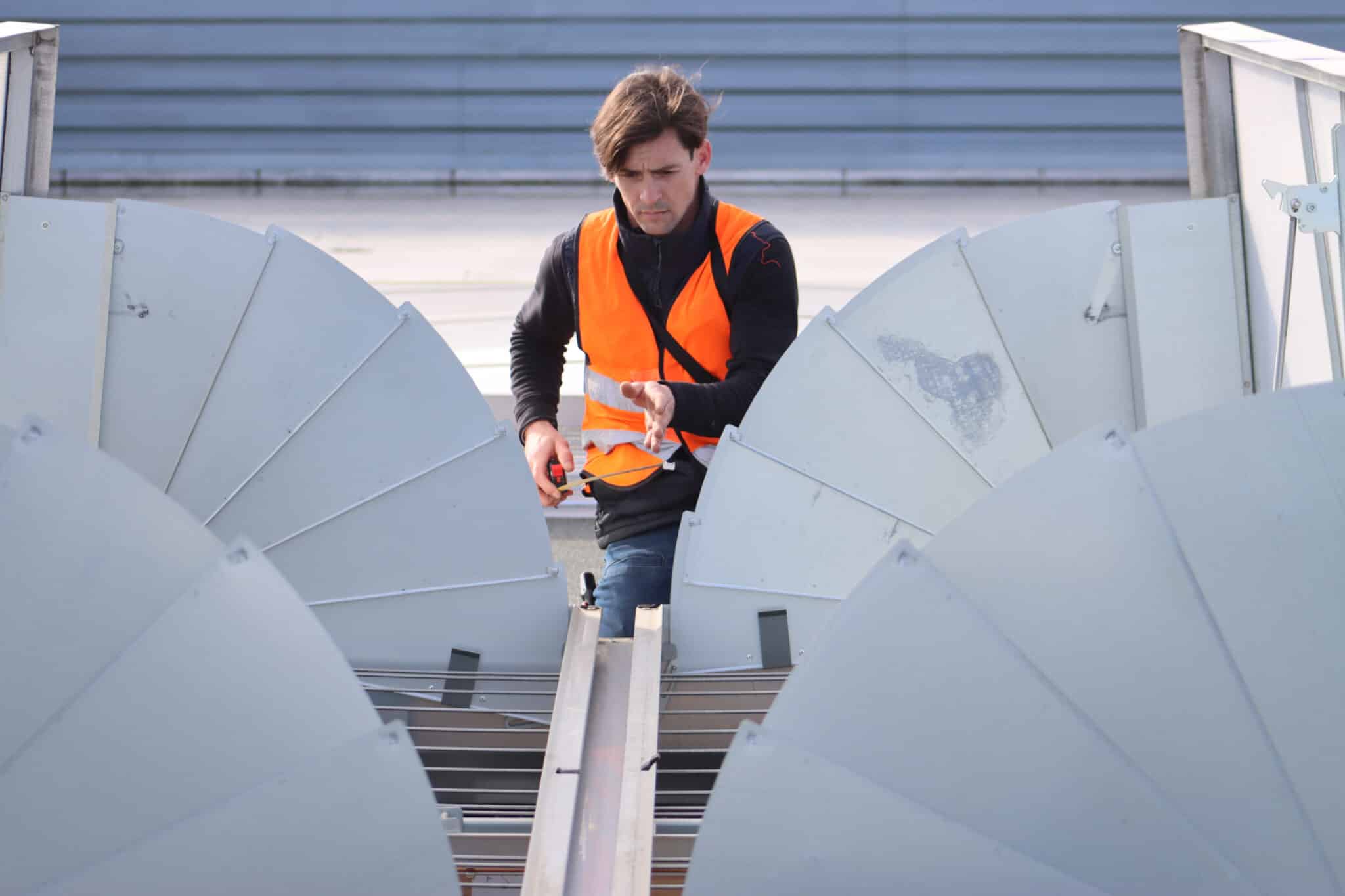 FIVO Services, entreprise du Groupe FIVO, intervient pour la maintenance et la remise en état de vos solutions coupe-feu, mais pas que. FIVO Services entretient également vos systèmes de désenfumage. Illustration avec David Fox et Devrig Guezennec dans un entrepôt de la région rouennaise.