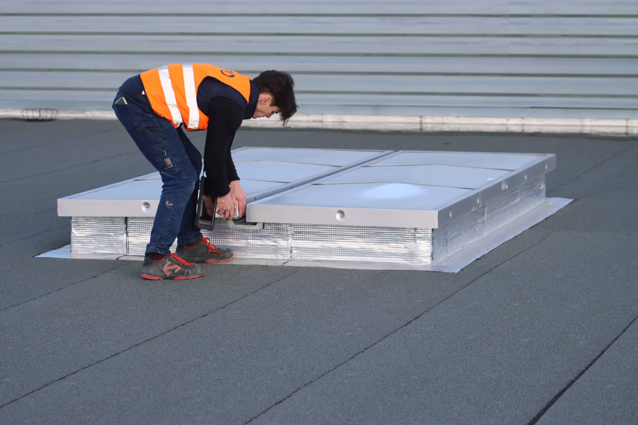Spécialistes du compartimentage et du désenfumage, les entreprises du Groupe FIVO ont un important savoir-faire dans cette branche d’activité. FIVO Services, entreprise du groupe, entretient également vos systèmes de désenfumage. Une maintenance obligatoire pour les entrepôts. « C’est une obligation qu’ont les entreprises de faire entretenir une fois par an (voire deux pour certains entrepôts) leurs dispositifs de désenfumage » , précise David Fox, technico-commercial pour FIVO Services. Dans la région rouennaise, il est intervenu dans un entrepôt avec Devrig Guezennec pour cette opération technique.